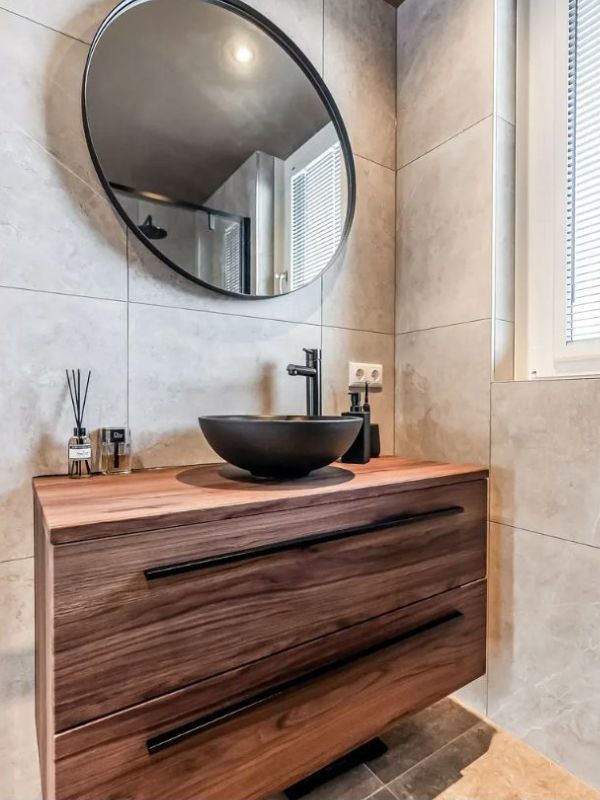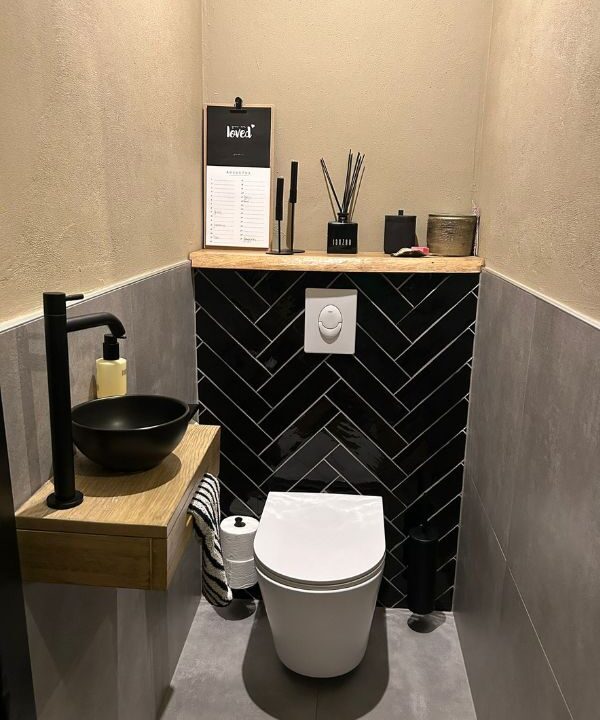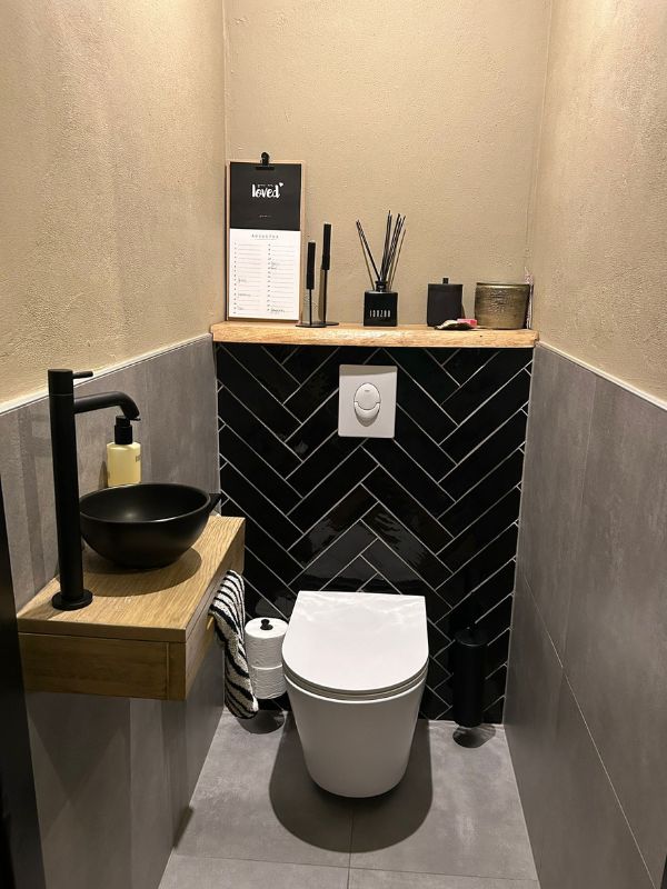 Rots Timmerwerken verzorgde hier de volledige renovatie: van het betegelen tot het installeren van het meubel, de wastafel en het sanitair. Eén aanspreekpunt voor het hele project, strak uitgevoerd en volledig op maat.